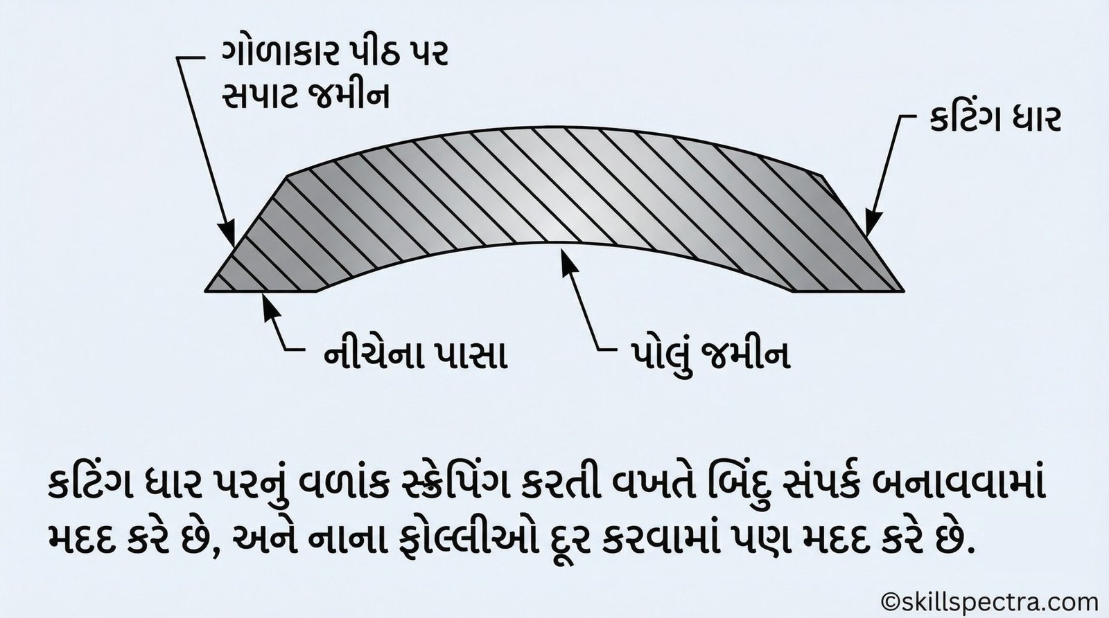 – **ઉપયોગ:** વક્ર સપાટીઓ જેવી કે **બેરિંગ (Bearings)** અને બુશિંગની અંદરની સપાટીને સ્ક્રેપ કરવા માટે.