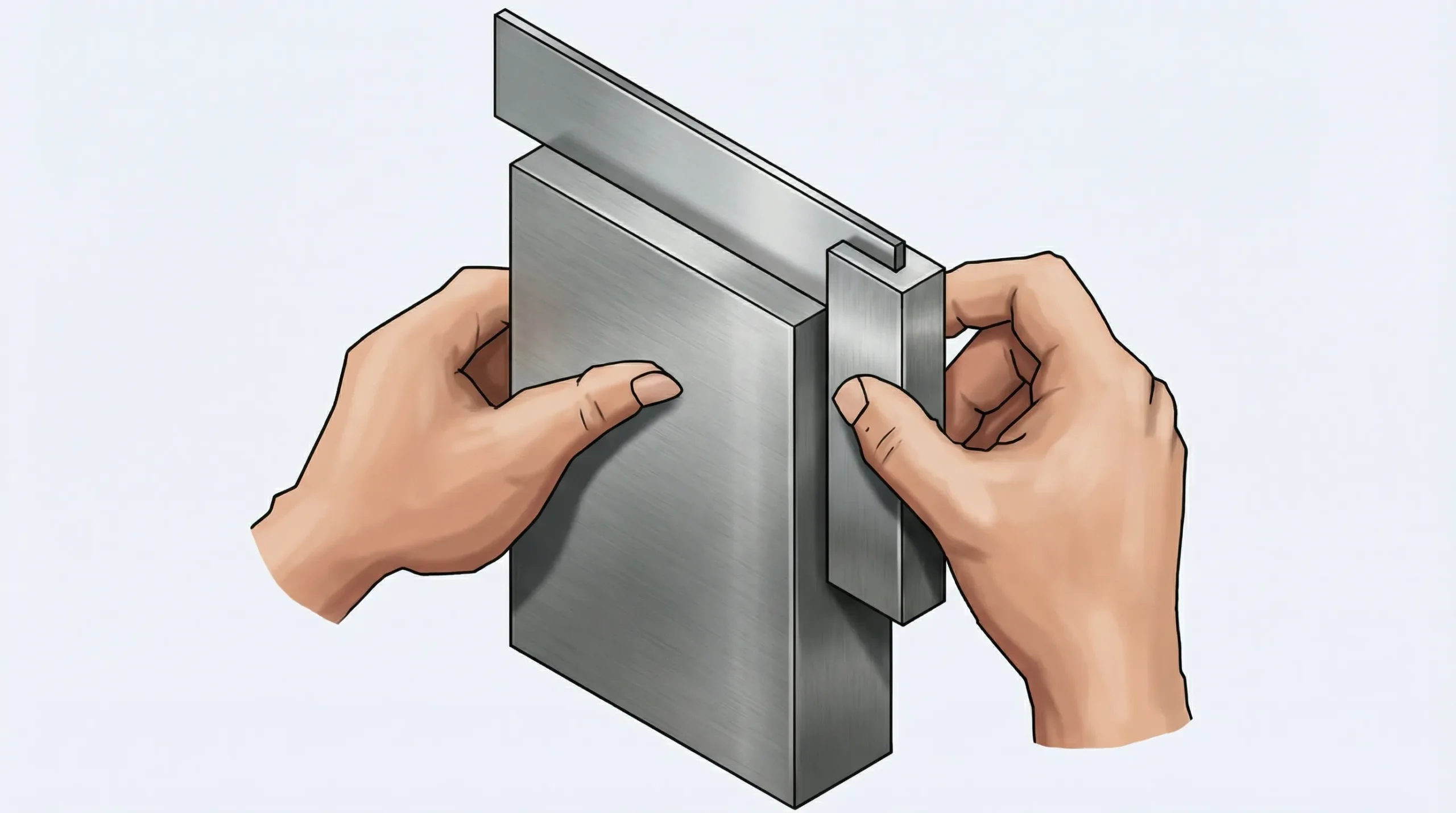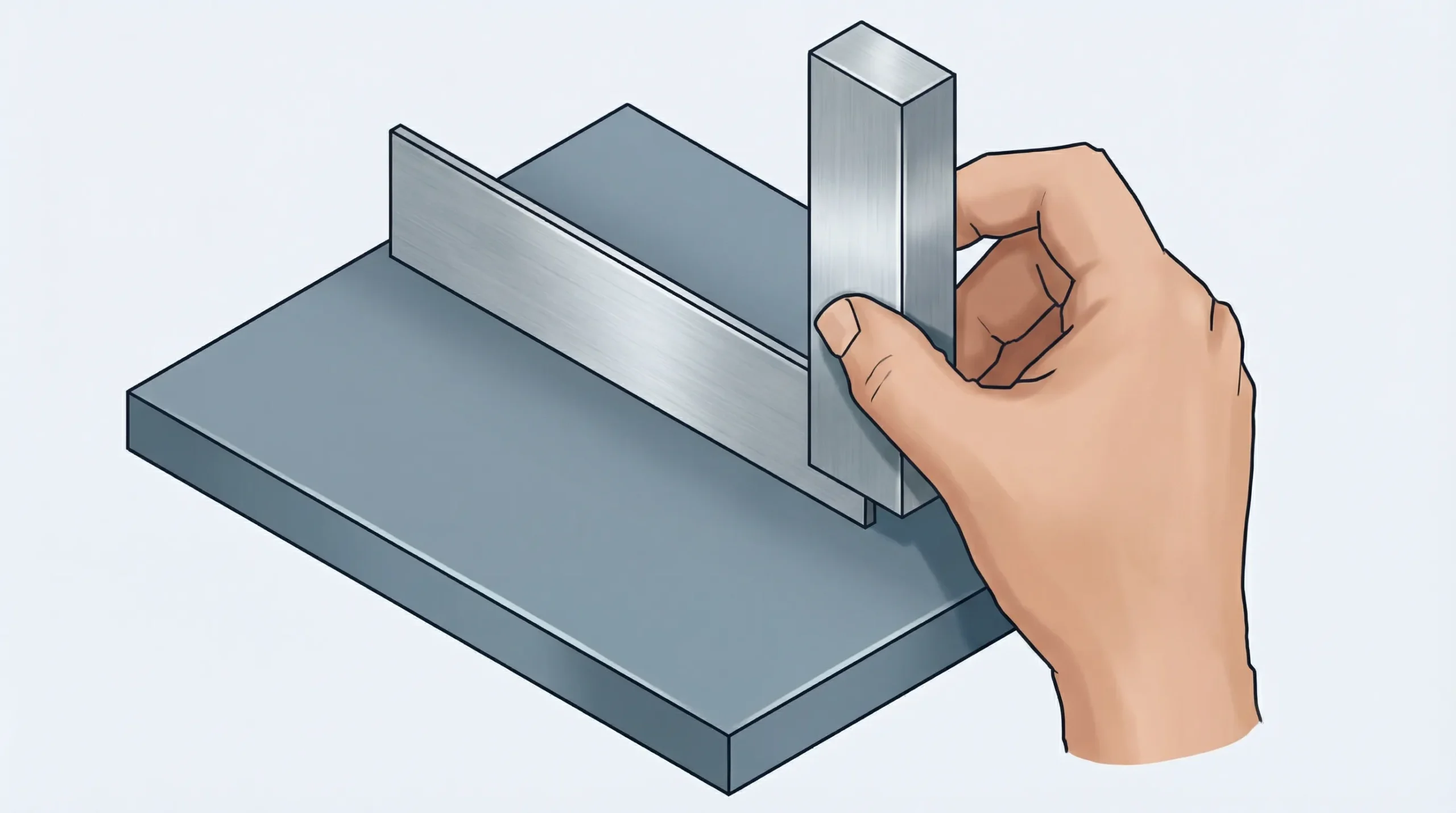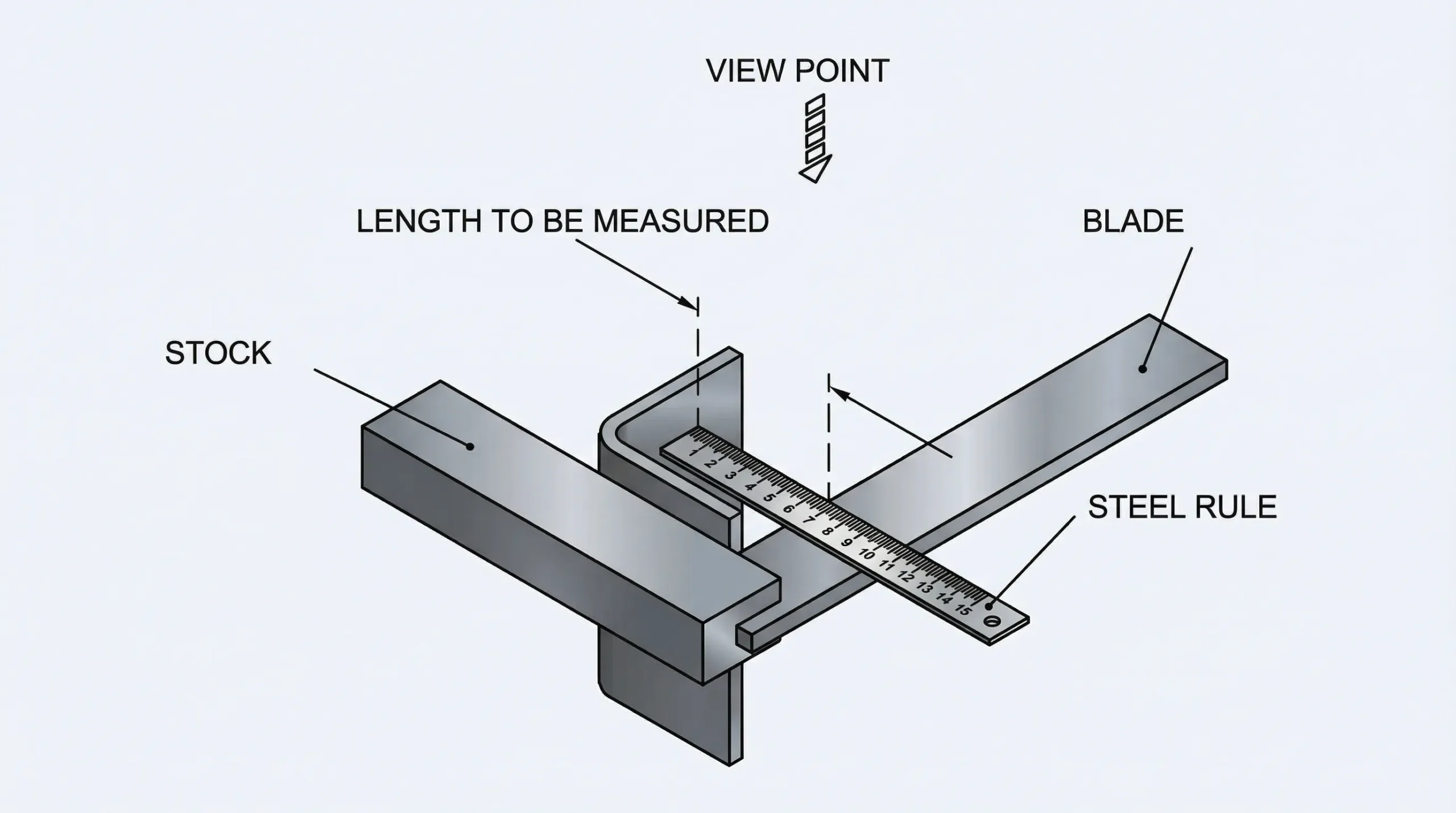 1. **સફાઈ (Cleaning):** સૌથી પહેલા વર્કપીસ અને ટ્રાય સ્ક્વેરની બ્લેડને કોટન વેસ્ટ (Cotton Waste) થી સાફ કરો જેથી તેલ કે ધૂળ માપમાં ન આવે.